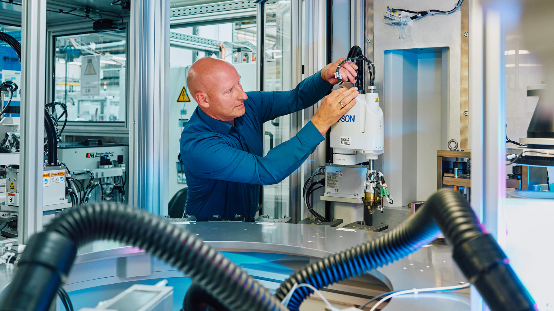 Unser hauseigener Sondermaschinenbau ermöglicht die Konstruktion und den Bau kundenspezifischer, vollautomatischer Produktions-, Montage- und Prüfsysteme.